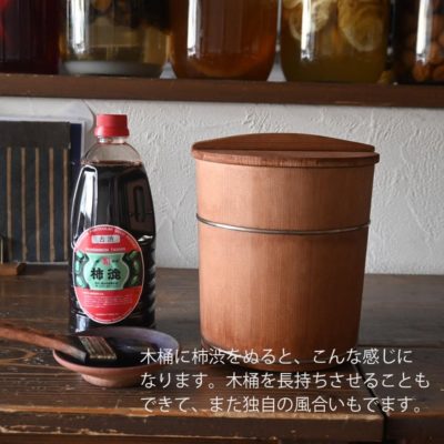 柿渋をぬってさらに自分の好みに木桶を育てていってもいいかも♪
