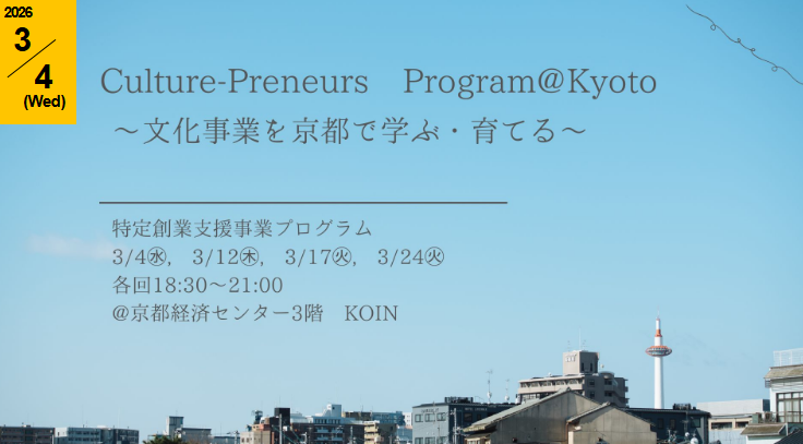主催者名:一般社団法人京都知恵産業創造の森、一般社団法人日本カルチャープレナー協会、日本政策金融公庫 京都創業支援センター、京都市